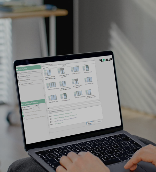 Το Profil Up συνδυάζει τεχνογνωσία και σύγχρονες λειτουργίες για να απλοποιεί την καθημερινότητα των κατασκευαστών κουφωμάτων. Προσφέρει ακριβή κοστολόγηση και έκδοση προσφορών, αυτόματο υπολογισμό και παραγγελία υλικών, καθώς και υπολογισμό της ενεργειακής απόδοσης (Uw) για κάθε κούφωμα.
